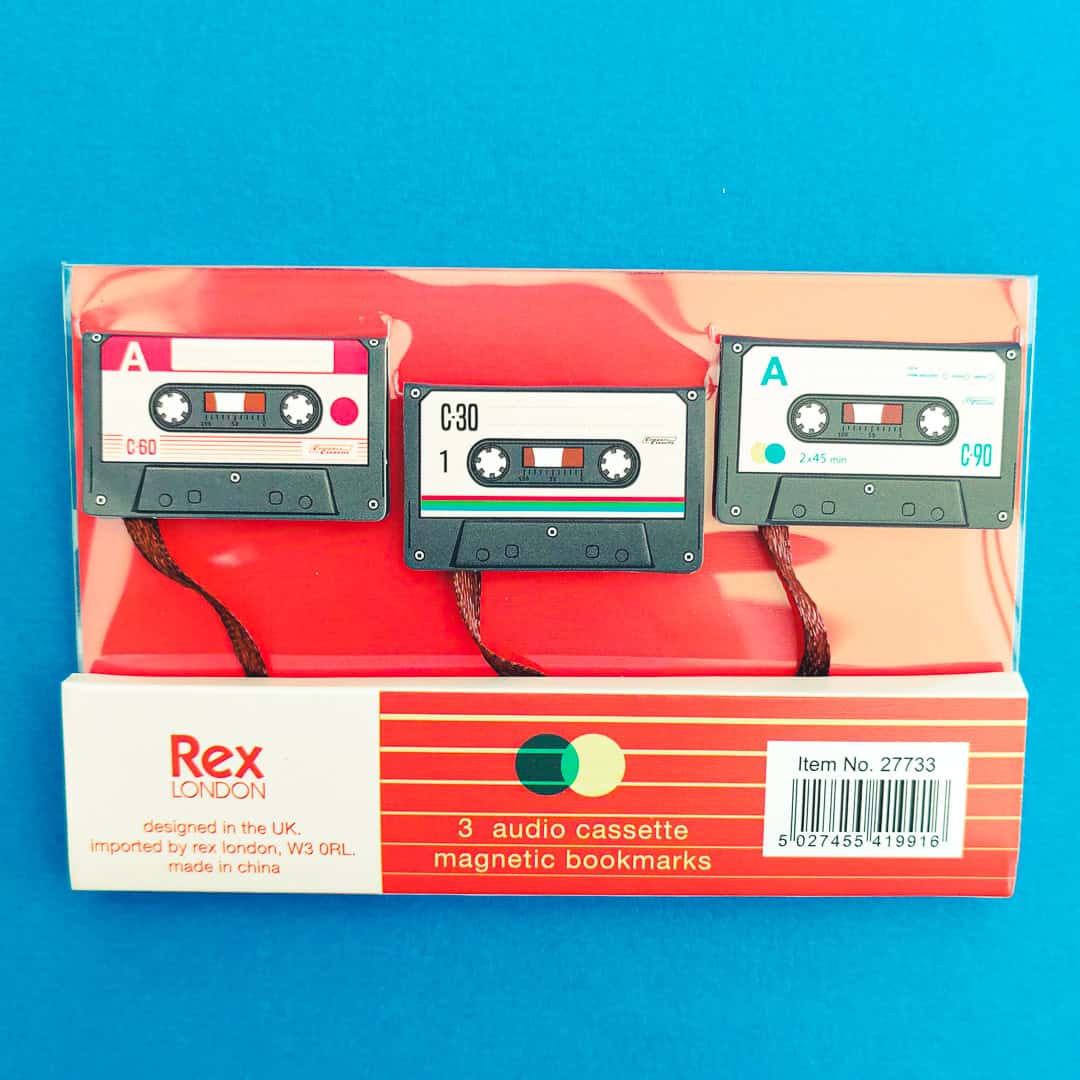 Nostalgia is always in style – these fab magnetic bookmarks are shaped like cassette tapes and will keep your place in a book, bullet journal or planner.