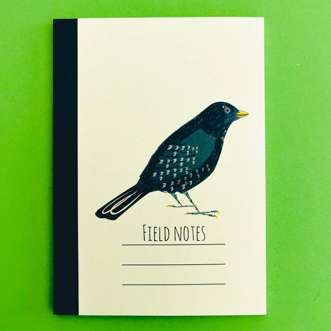Lovely softcover A6 notebook with a blackbird motif and “field notes” on the cover. Keep track of your wildlife adventures or just bring a bit of nature to your bag.