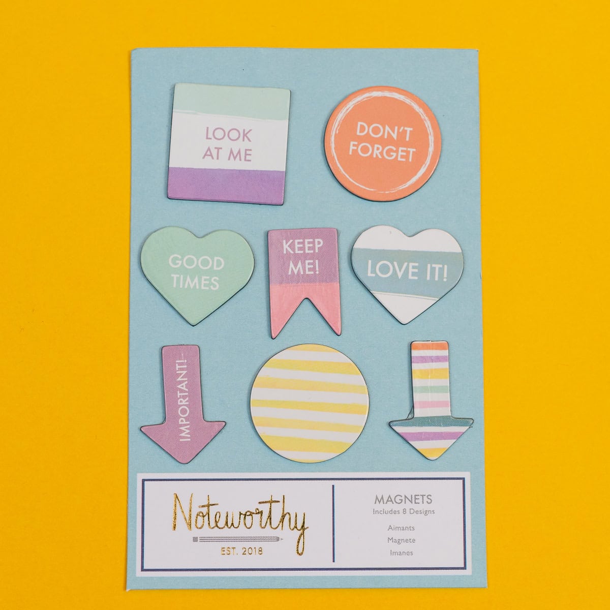 A pack of mini magnets to keep you organised and colour-coordinated – with arrows and notes like “look at me”, “good times” and “keep me”, these are just as happy on your fridge with your holiday photos as on your noticeboard with your next invoice.